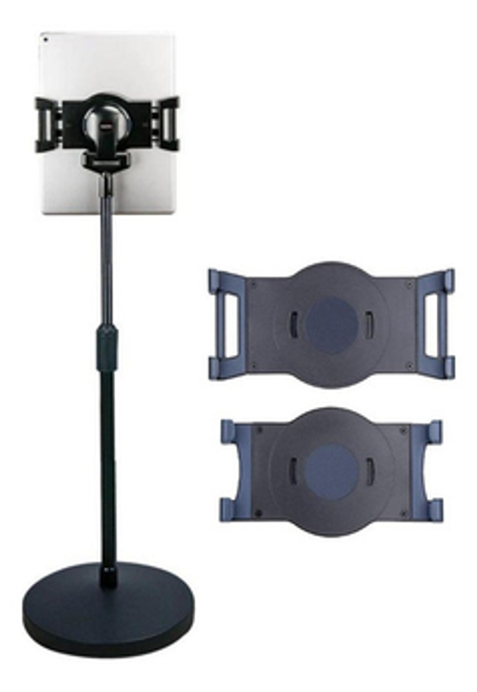 Eleva tu experiencia digital con nuestro soporte de pie ajustable diseñado para iPads y tablets. Con una estructura robusta de metal y plástico resistente, este soporte ofrece una altura ajustable para una visualización óptima y mayor comodidad mientras utilizas tu tablet o iPad.