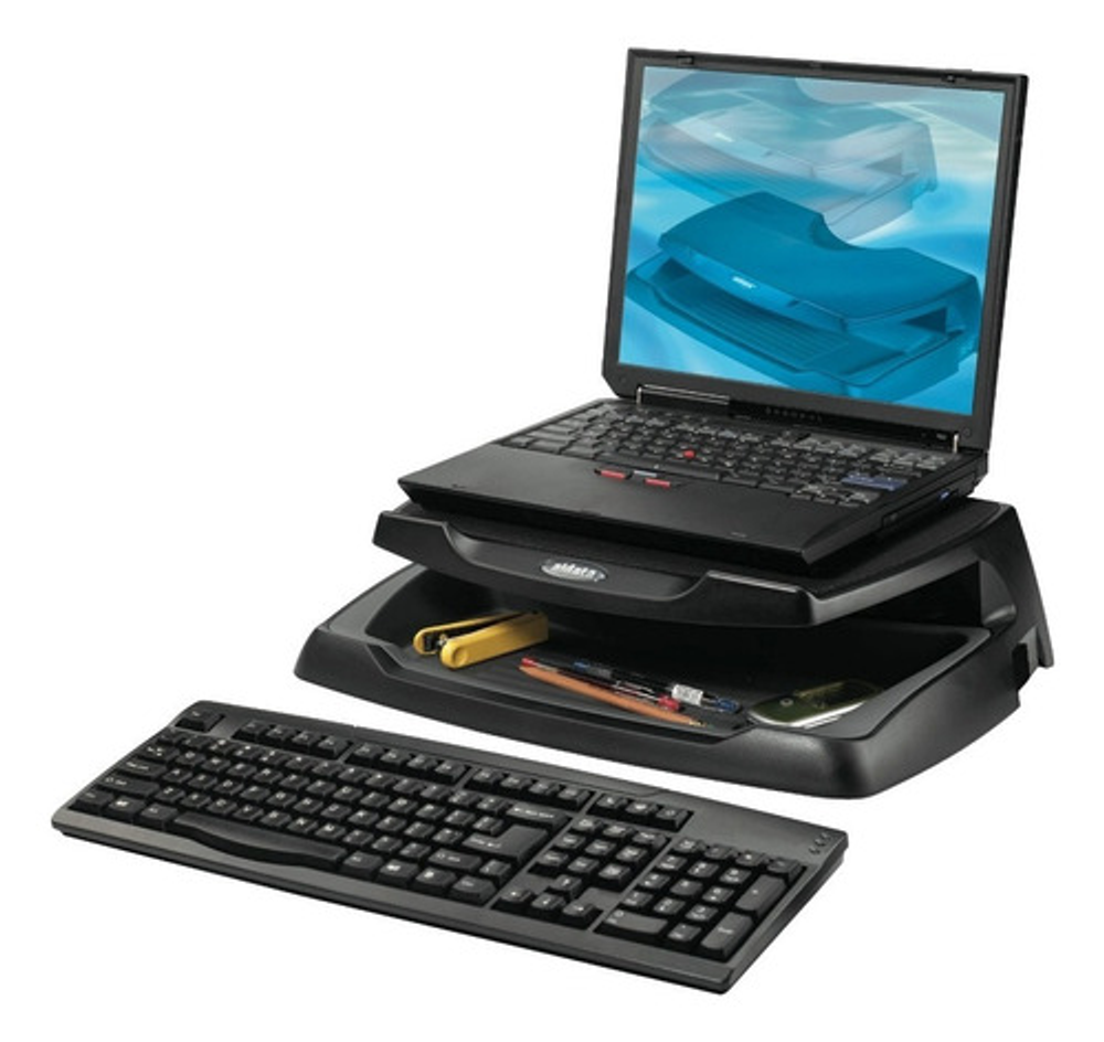 Diseño ergonómico para elevar monitor o notebook, facilitando el uso de teclado externo (altura 12.7 cm).