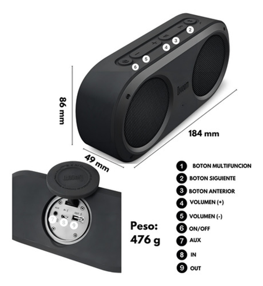 Apto para aire libre Usalo en donde quieras, este dispositivo está diseñado para que tengas el mejor sonido siempre, tanto en interiores como en exteriores.