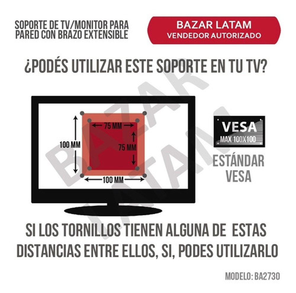 Estándar vesa de 100 x 100 más medida de 75 x 75.