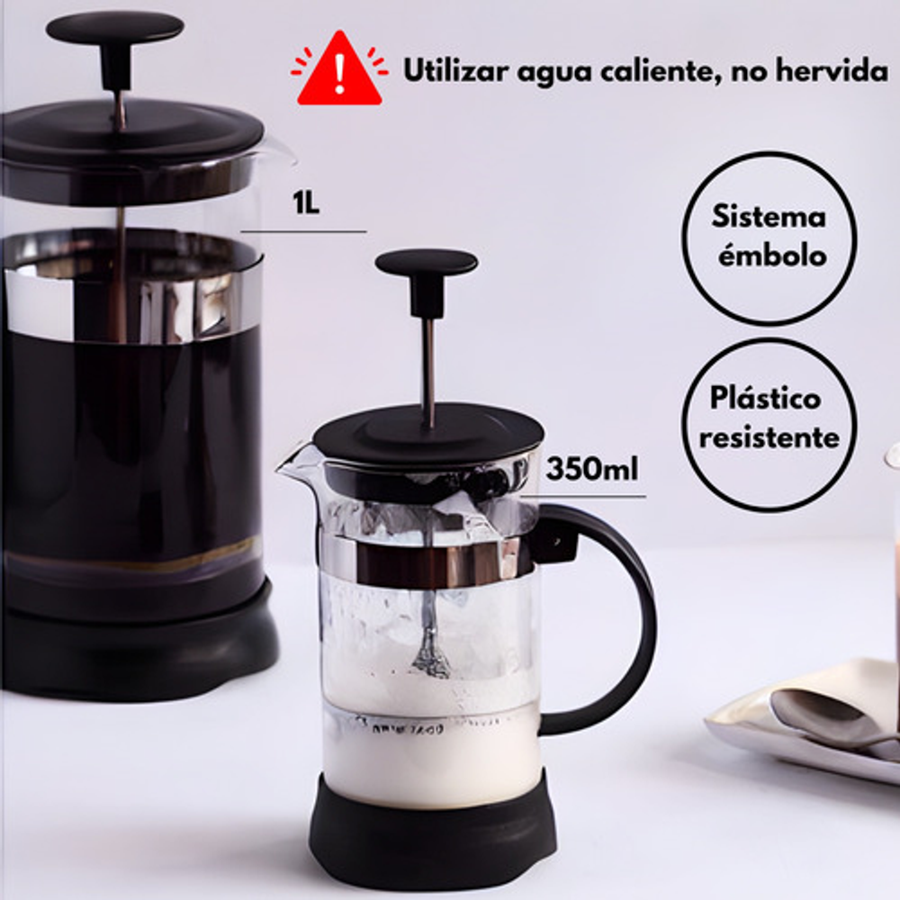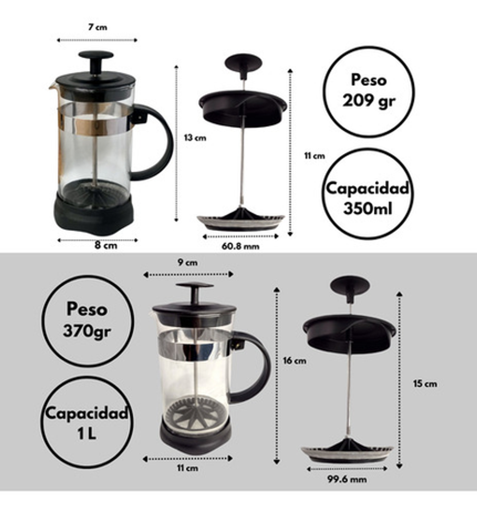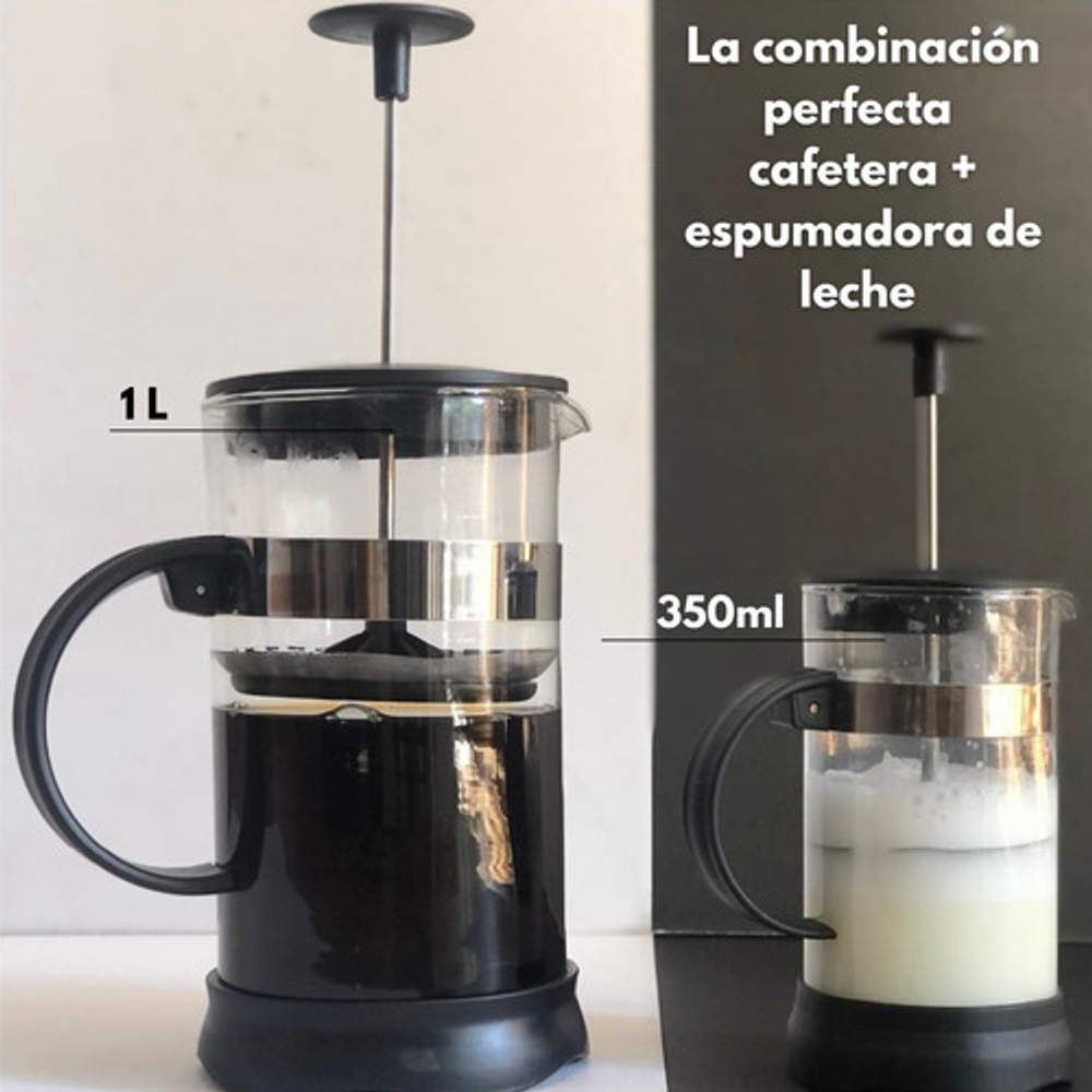 Combo cafetera prensa frances con embolo 1L + cafetera prensa francesa con embolo 350ML