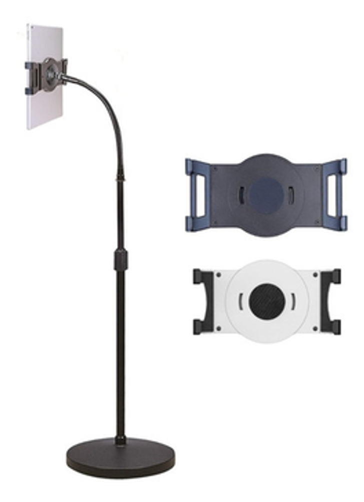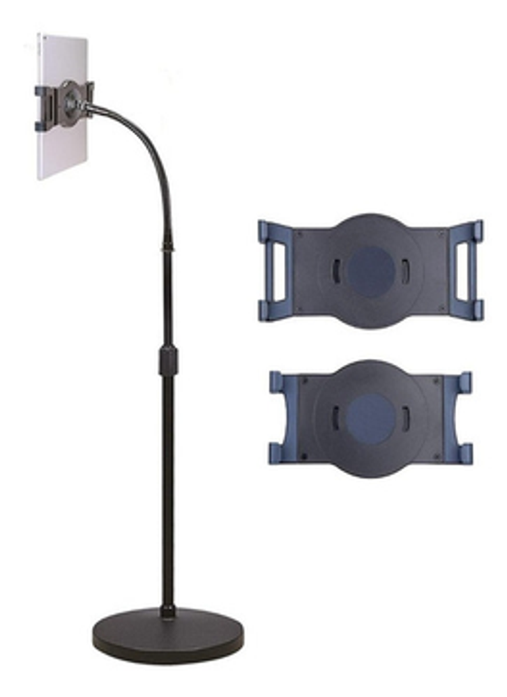Soporte de Piso Ergonómico Ajustable para iPad y Tablets que al menos en uno de sus lados mida entre 170 y 240mm.
