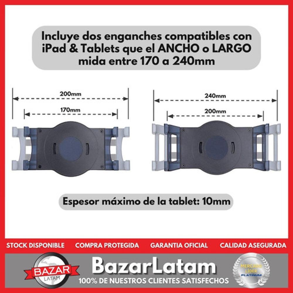 Modelos de tablets compatibles: Uno de los lados de la tablet debe medir entre 170 y 240mm