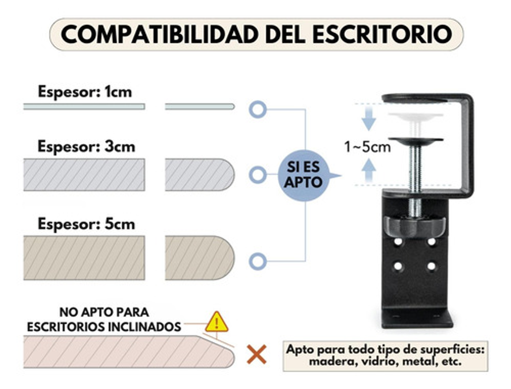 Tipo de soporte: Bajo Escritorio
