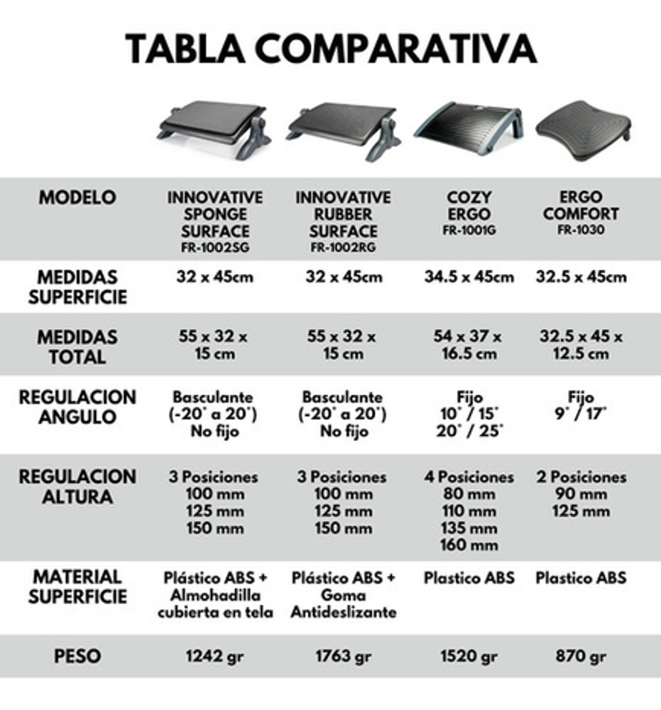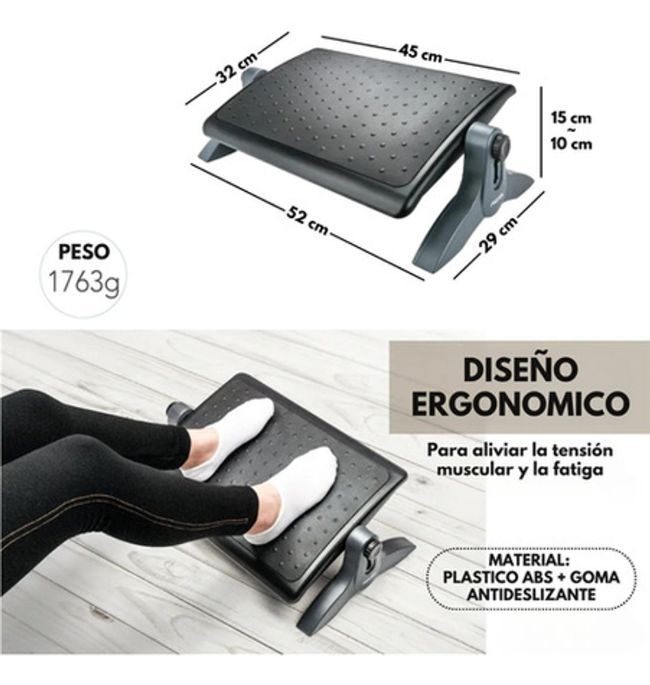 Favorece una postura corporal correcta, reduciendo la tensión y fatiga en piernas, espalda y cuello. Mejora la circulación sanguínea y proporciona estabilidad gracias a sus topes antideslizantes.