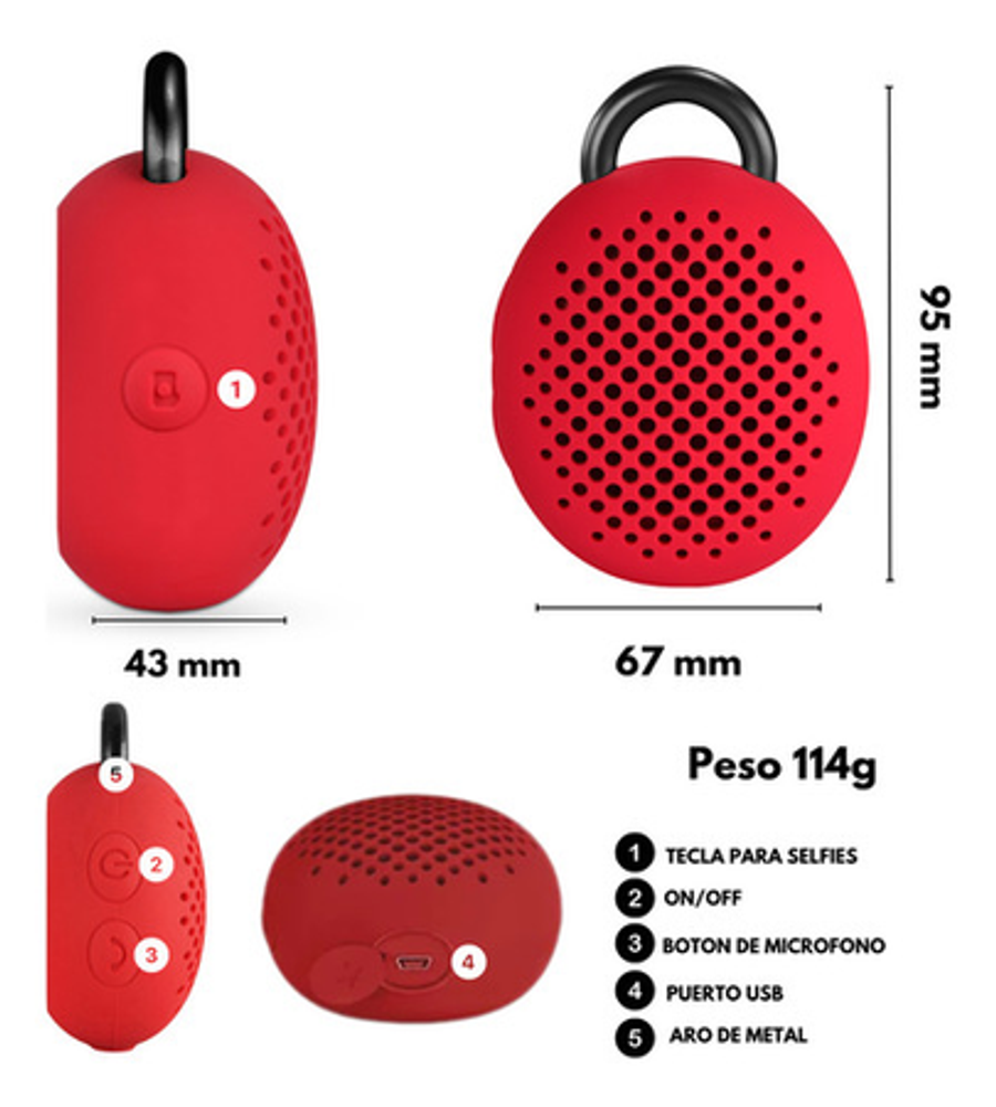 BlueTune-Bean es un parlante inalámbrico bluetooth portátil con micrófono de alta capacidad. Funciona con cualquier dispositivo Bluetooth y posee una increíble calidad de sonido. Una de sus características más peculiares es el disparador remoto para tomar selfies con el celular hasta 9mts de distancia.