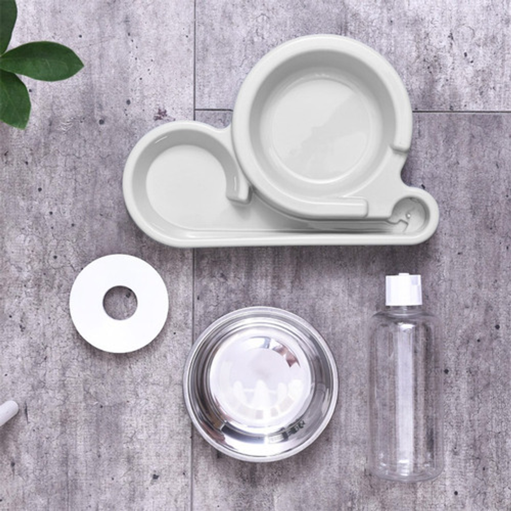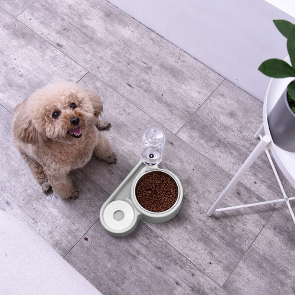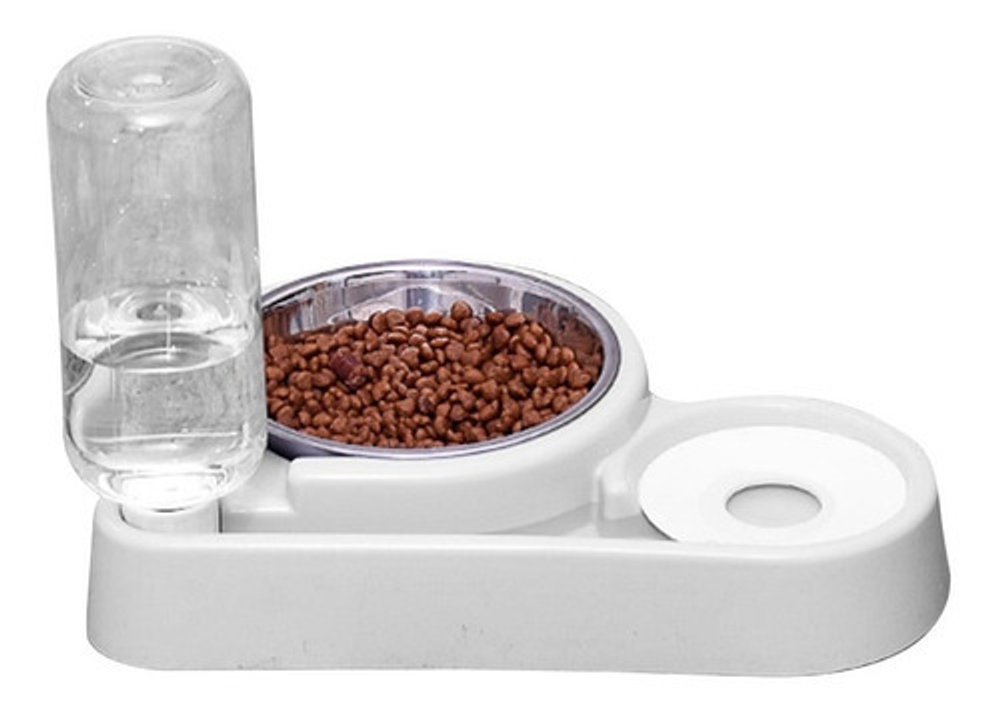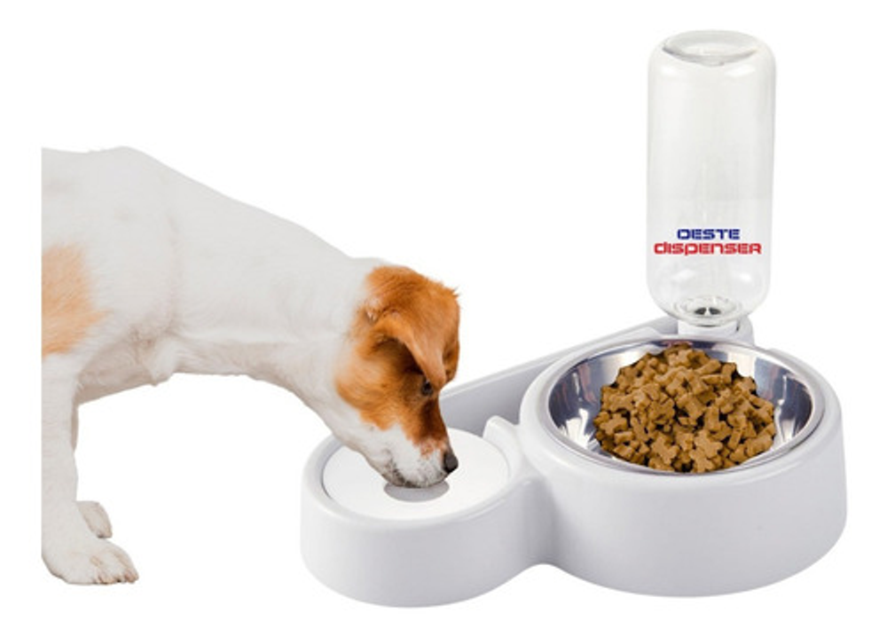 ¡Hora de comer! Ahora el sector de alimentación se verá mas ordenado y limpio con el Bebedero/Comedero. Tu amigo peludo tendrá su comida o bebida en un cuenco cómodo y sólo para él. Material base: polipropileno Material botella: plástico PET Largo base: 29,5 cm Ancho base: 18,5 cm Diámetro comedero: 14 cm Altura comedero: 5,5 cm Capacidad botella: 500 ml Altura total producto: 21 cm Origen: China