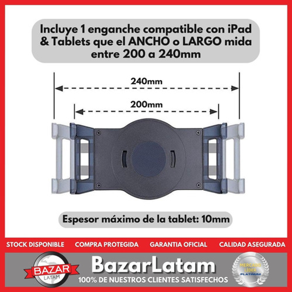 Modelos de tablets compatibles: Uno de los lados de la tablet debe medir entre 200 y 240mm
