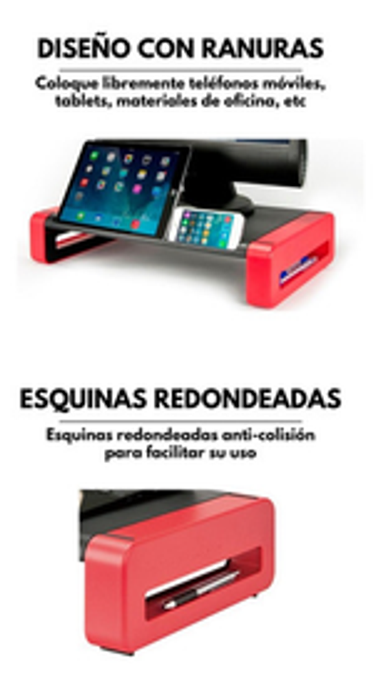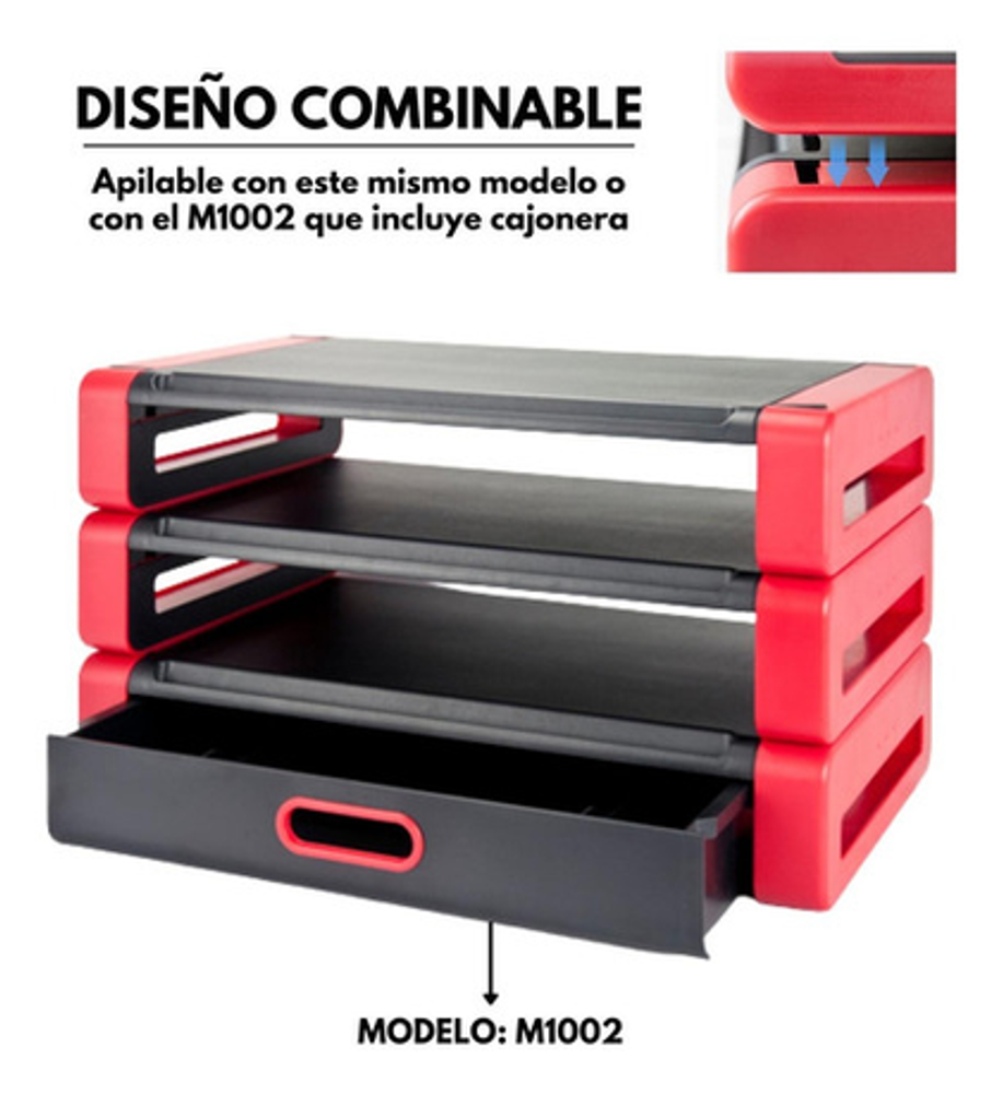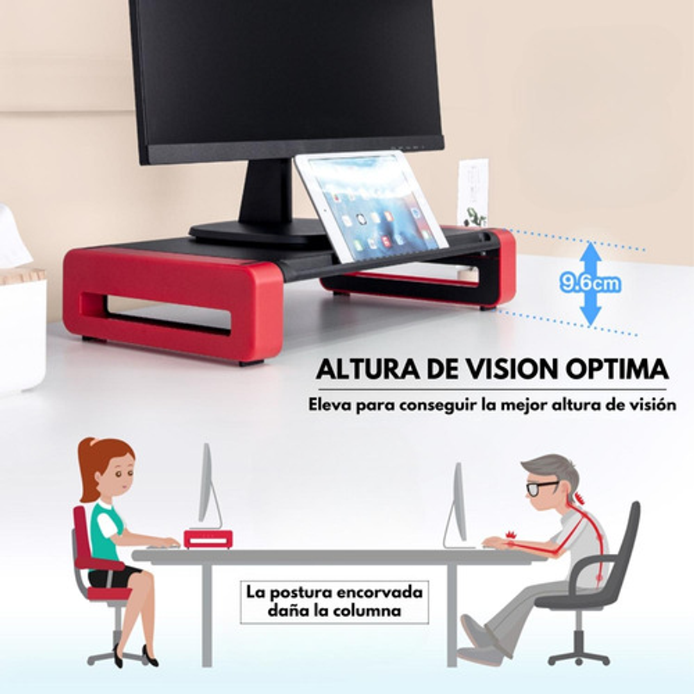 Base Soporte ergonomico para Monitor -Marca: Aidata -Modelo: DELUXE MONITOR STAND -Color: ROJO / GRIS -Sin Cajonera