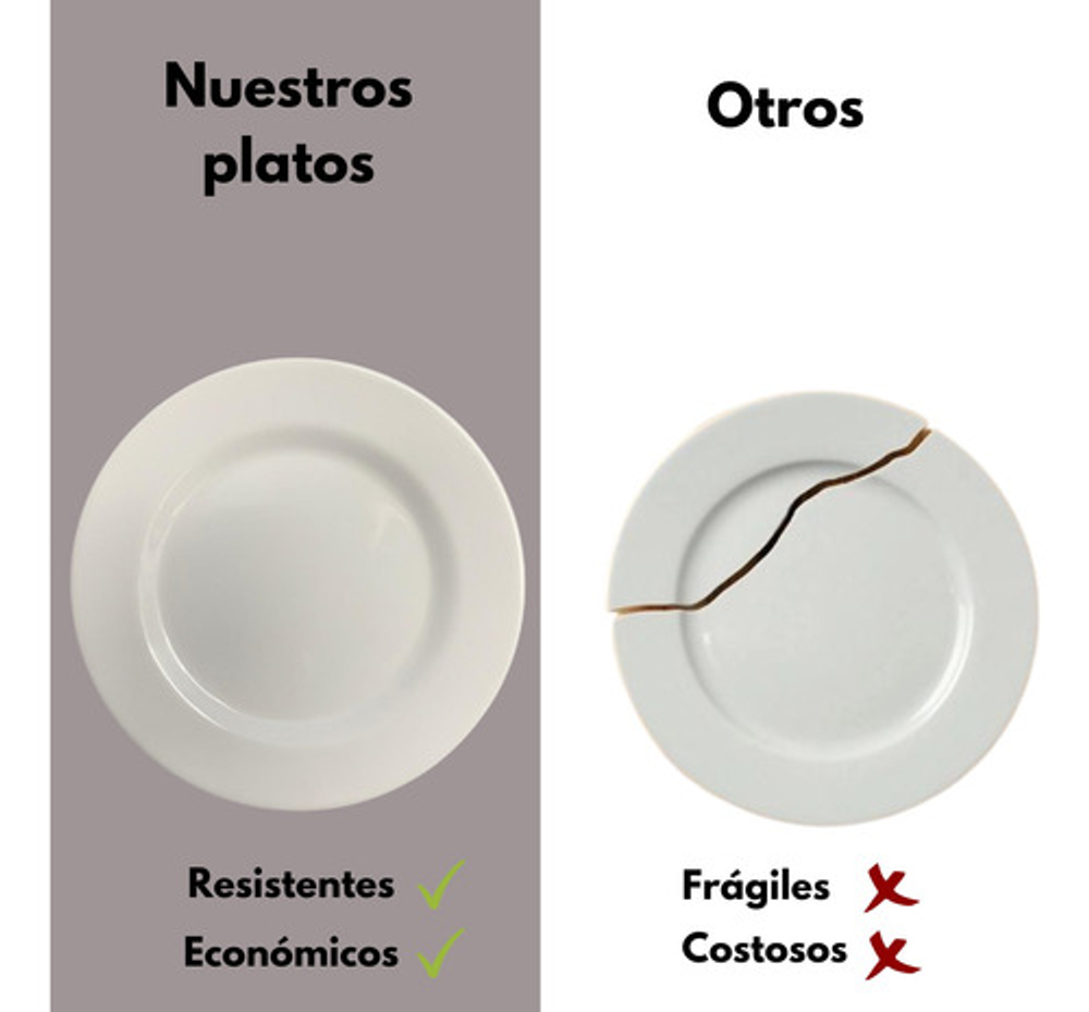 Hermosa vajilla de melamina de alta calidad y brillo, con diseño símil porcelana. Son prácticos, estéticos y muy resistentes.