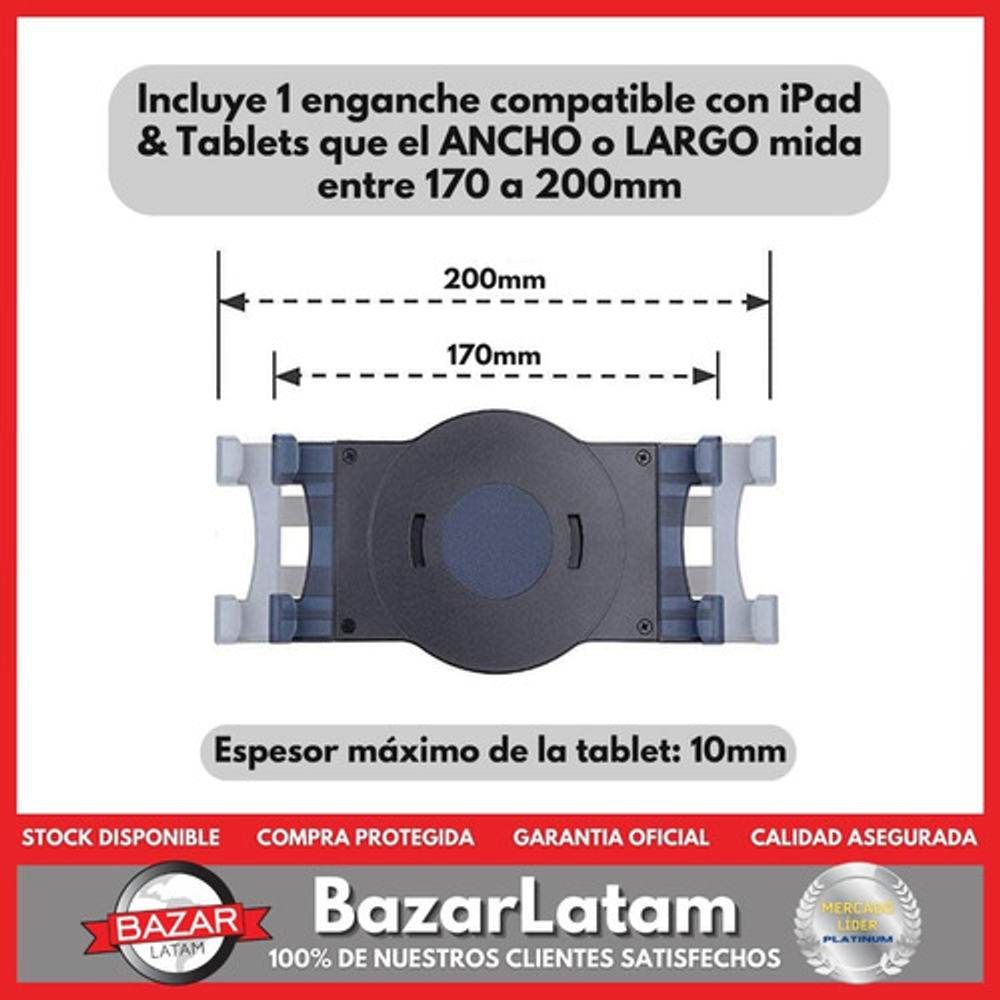 Modelos de tablets compatibles: Uno de los lados de la tablet debe medir entre 170mm a 200mm