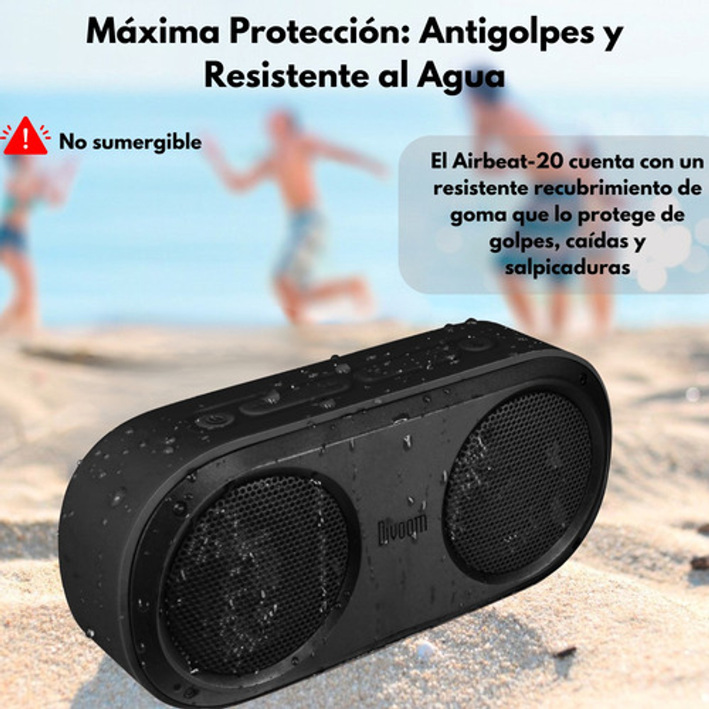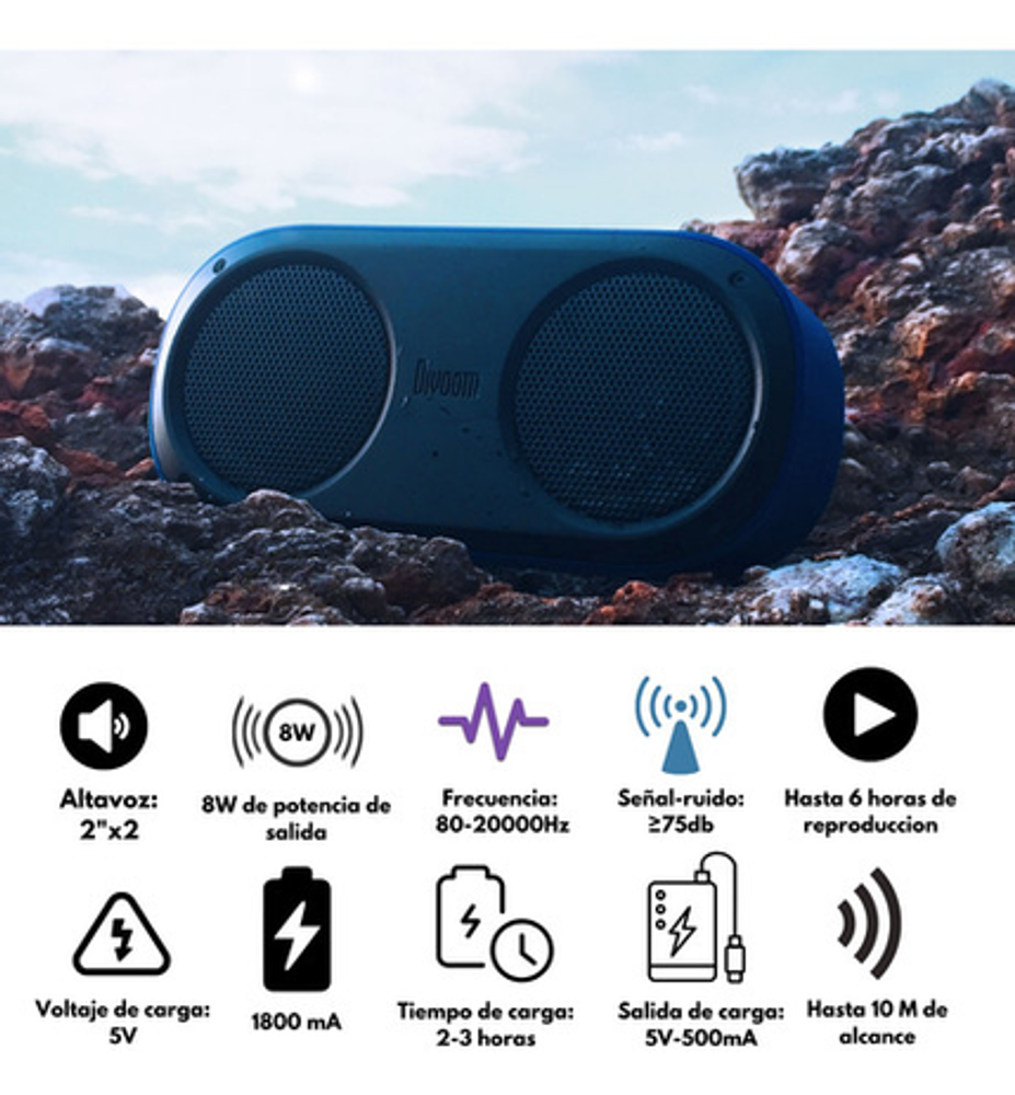 Divoom Airbeat 20 es un partalante estereo con estilo. Potenciado por 2 finos drivers. El AirBeat esta listo para tirar unos golpes realmente serios. Tiene un diseño compacto y resistente al agua, al mismo tiempo robusto y durable.