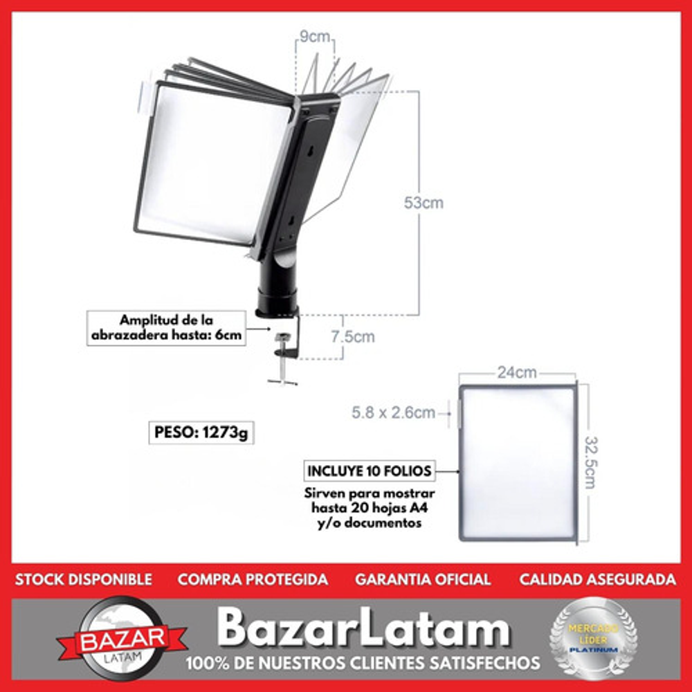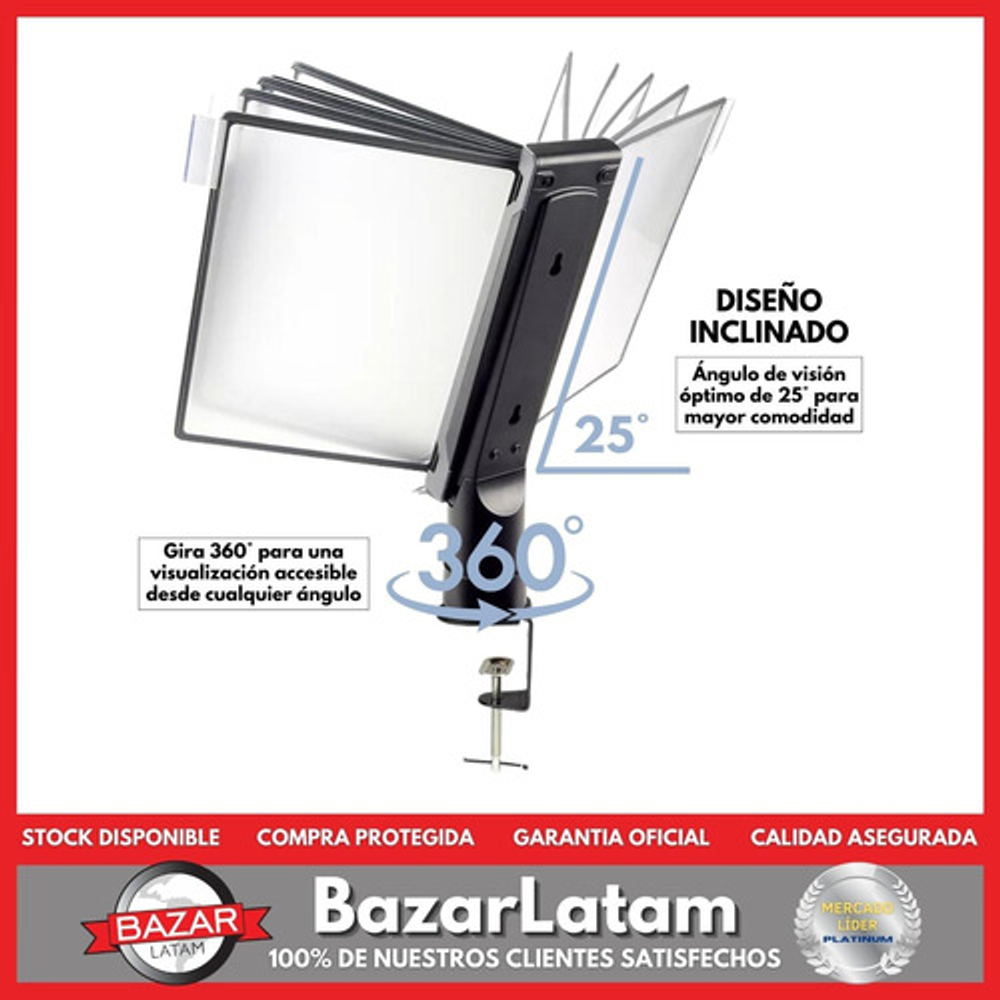 Panel organizador de documentos giratorio, puede usarlo en su escritorio o amurarlo a la pared.
