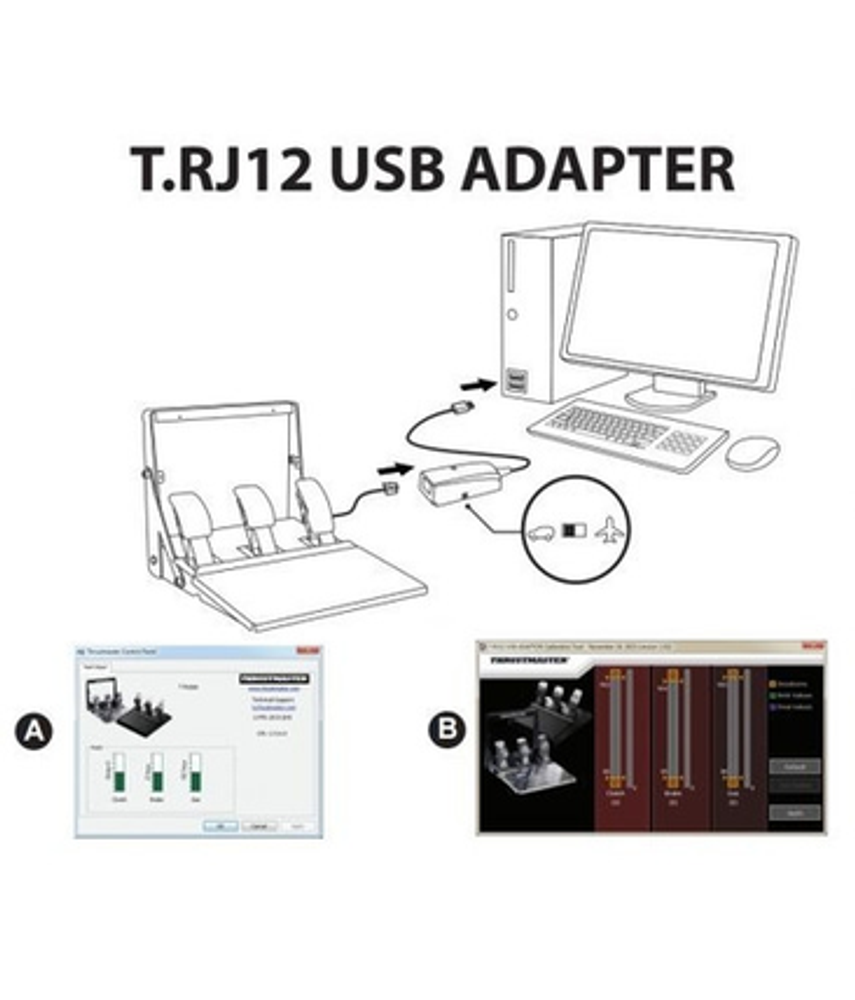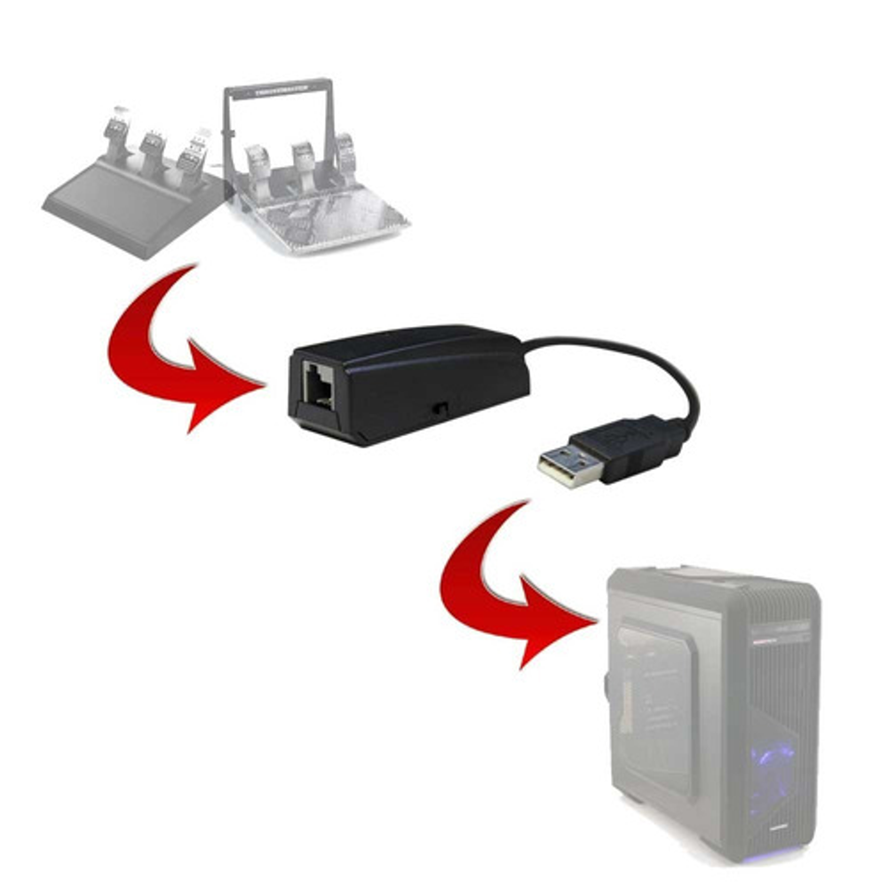 ADAPTADOR T.RJ12 THRUSTMASTER Hace que los Thrustmaster TFRP sean compatibles en PC con todos los joysticks del mercado y hace que los conjuntos de 3 pedales Thrustmaster T3PA y T3PA-PRO sean compatibles en PC* con todos los volantes de carreras del mercado.