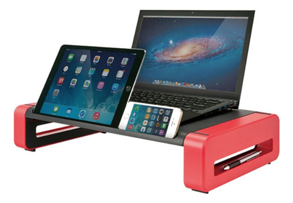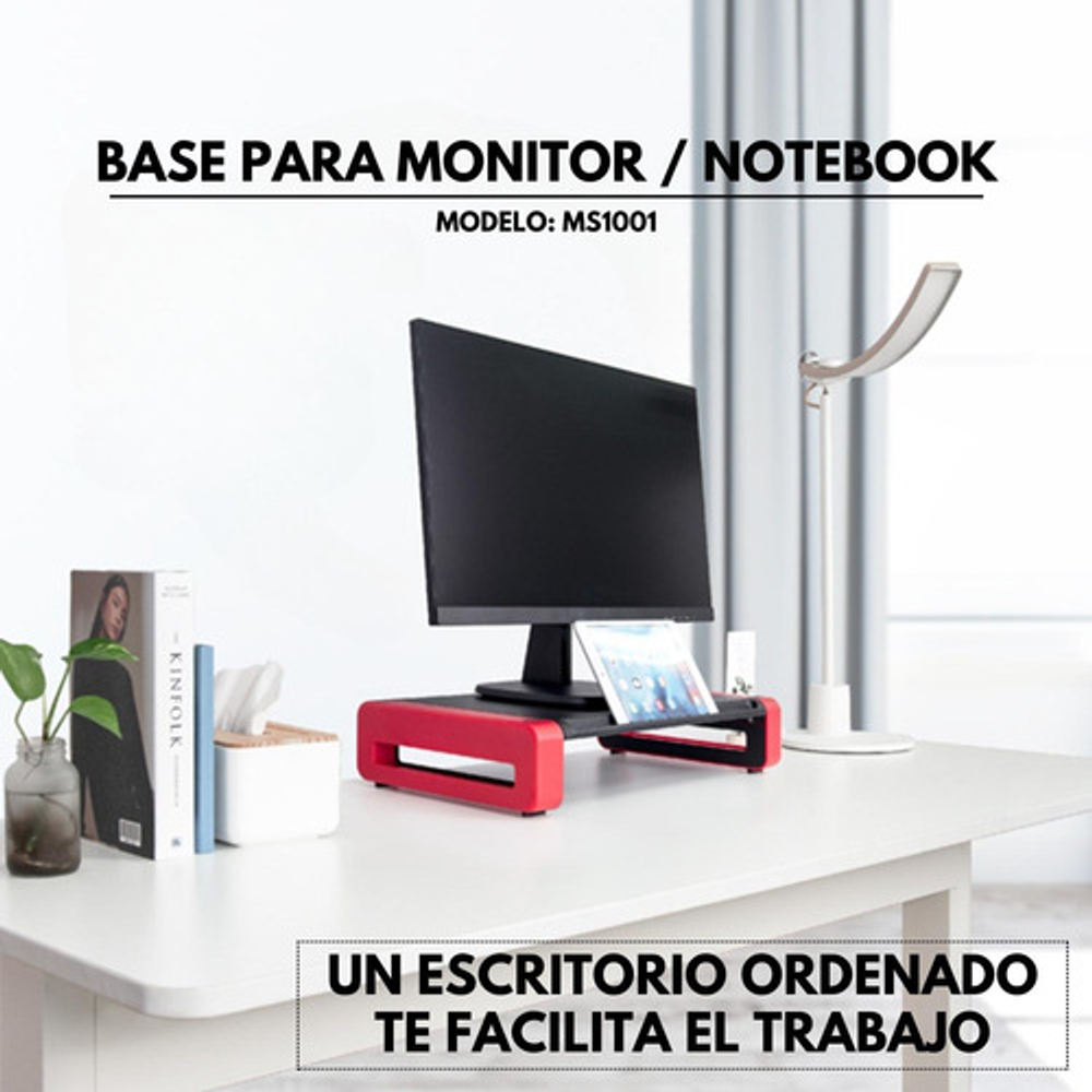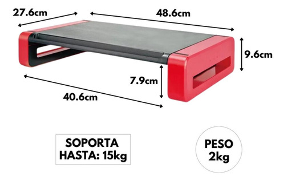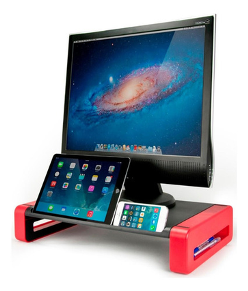 Base Soporte ergonomico para Monitor -Marca: Aidata -Modelo: DELUXE MONITOR STAND -Color: ROJO / GRIS -Sin Cajonera