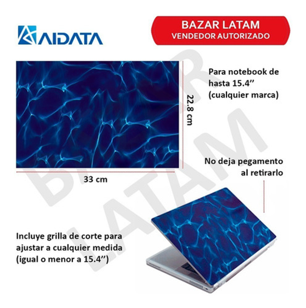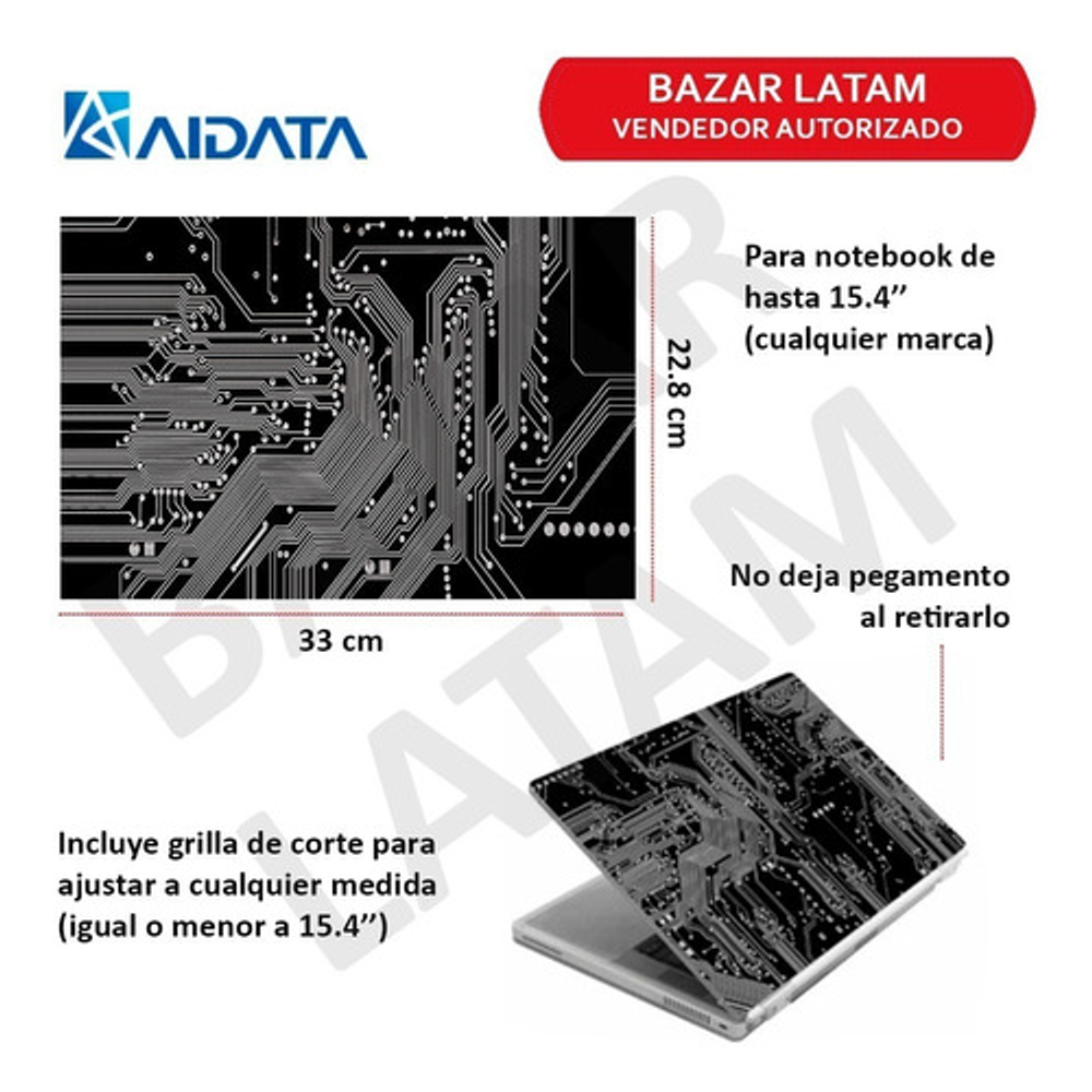 El skin mide 33 cm ancho x 22.8 cm de profundo, apto para notebooks que tengan máximo hasta esas medidas.