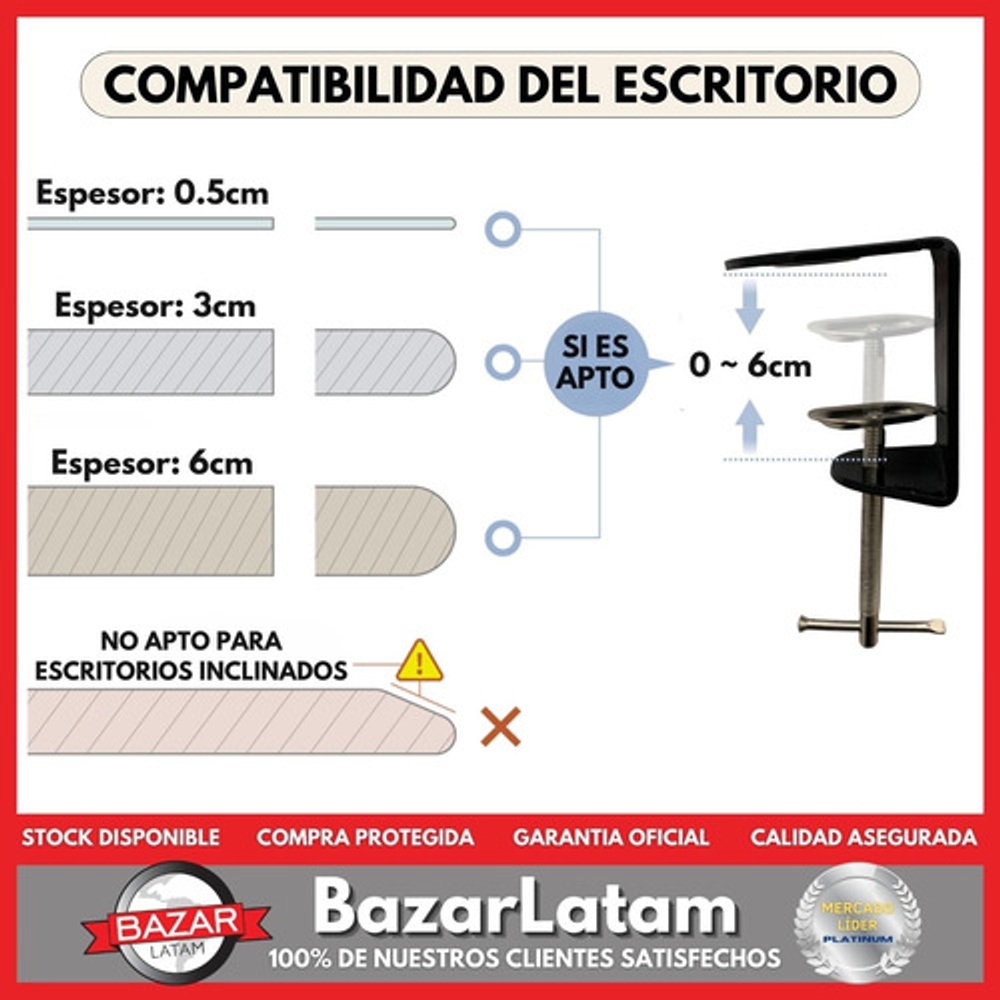 Para escritorios de hasta 6 cm de grosor
