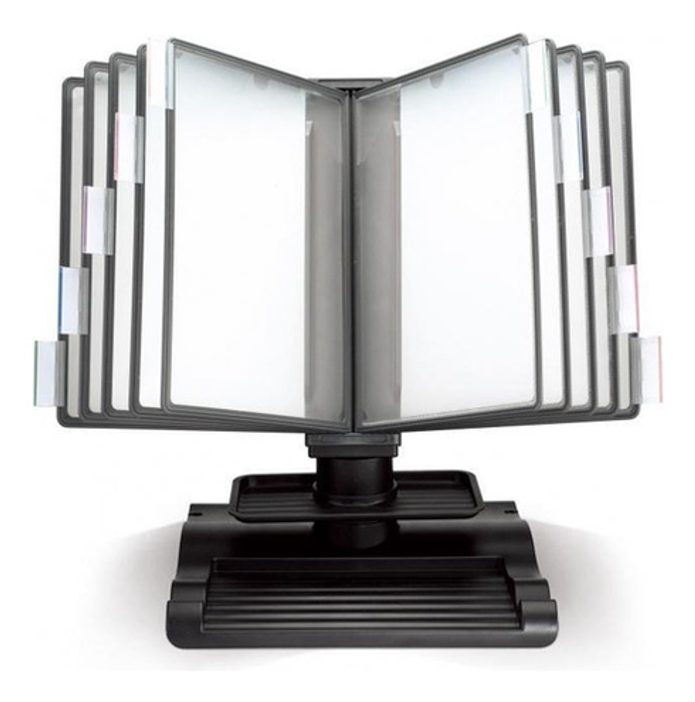 • Fácil Acceso: Los paneles giratorios proporcionan un acceso sencillo a tus documentos, lo que facilita la gestión de la información. • Estabilidad y Comodidad: La base antideslizante mantiene una lectura cómoda, con un centro de gravedad estable. • Ángulo Ajustable: Gira 360° para brindar un ángulo de lectura óptimo y cómodo. Además, tiene un ángulo de inclinación de 25°. • Incluye Folios Anti-Refractivos: Viene con 10 folios anti-refractivos que permiten mostrar hasta 20 hojas A4 o documentos. • Pestañas de Referencia: Incluye 10 pestañas/index para clasificar y acceder a tus documentos de manera rápida y clara. • Cambio de Páginas Sencillo: Facilita el reemplazo y la actualización de hojas de manera rápida y sencilla. • Diseño de bandeja para papelería: Diseño versátil para almacenar papelería y objetos pequeños. • Hojear sin Esfuerzo: Disfruta de hojear las páginas sin esfuerzo para una lectura más cómoda. • Fácil de Limpiar: Se limpia con facilidad y evita la retención de bacterias. • Sistema de Sujeción por Espigas: Su material plástico flexible permite una instalación fácil y estable. • Fácil Instalación y Ajuste: Permite actualizar la información de manera oportuna. • Hecho en Taiwán: Garantiza calidad y durabilidad.
