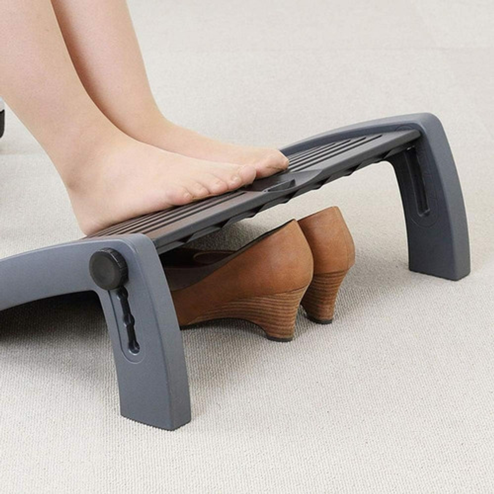 El Reposapiés de Aidata favorece una correcta posición del cuerpo, ayudando a reducir la tensión y la fatiga de las piernas, la espalda y el cuello. El reposapies favorece la circulación sanguínea y cuenta con topes antideslizantes para evitar que se deslice en el suelo.