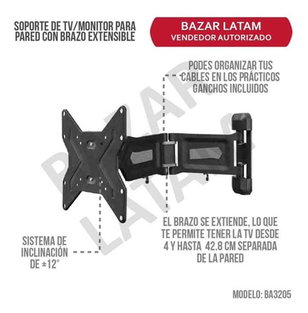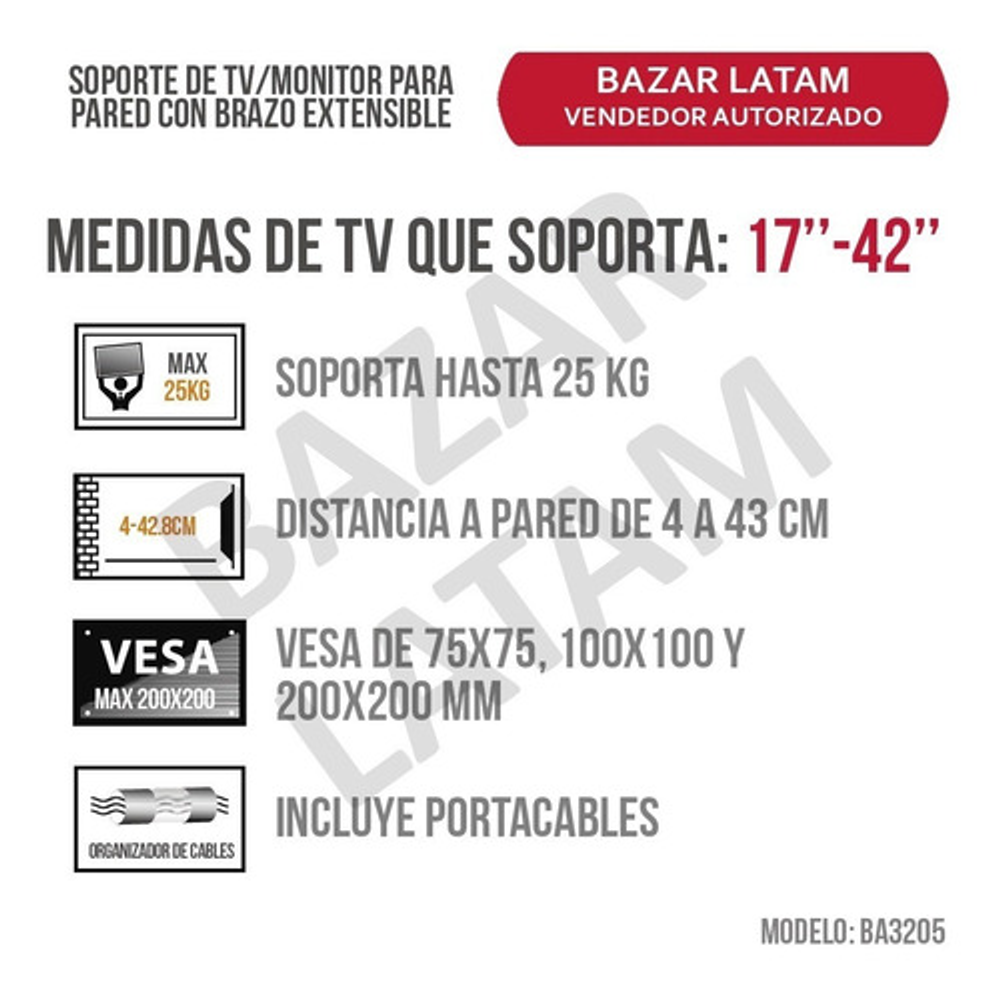 Distrancia entre la pared y el televisor: 4 a 42,8 cm.