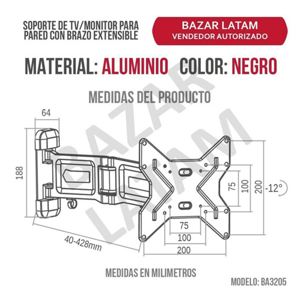 Estándar vesa de 100 x 100 / 200 x 200 / 75 x 75 mm.
