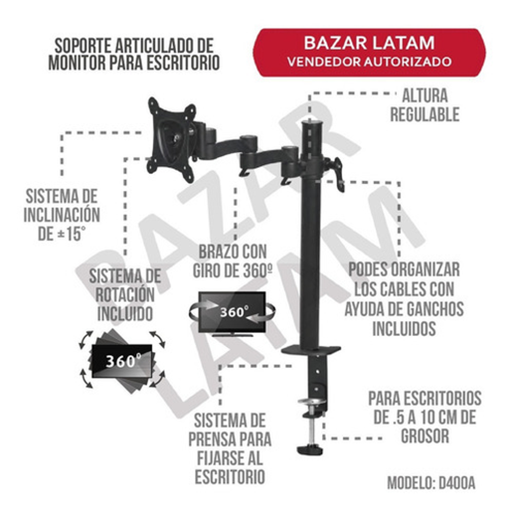 Soporte Articulado De Escritorio Para Monitor FULL MOTION - Acero - Feninger
